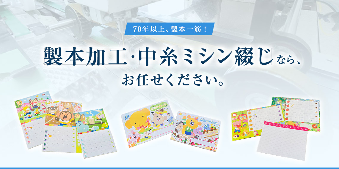 | 事業内容 | 中糸ミシン綴じ製本を中心とした製本加工 |